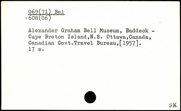 Alexander Graham Bell Muséum, Baddeck -Cape Breton Island,NoS, Ottawa,Canada, Canadian Govt.Travel Bureau,[1957].
