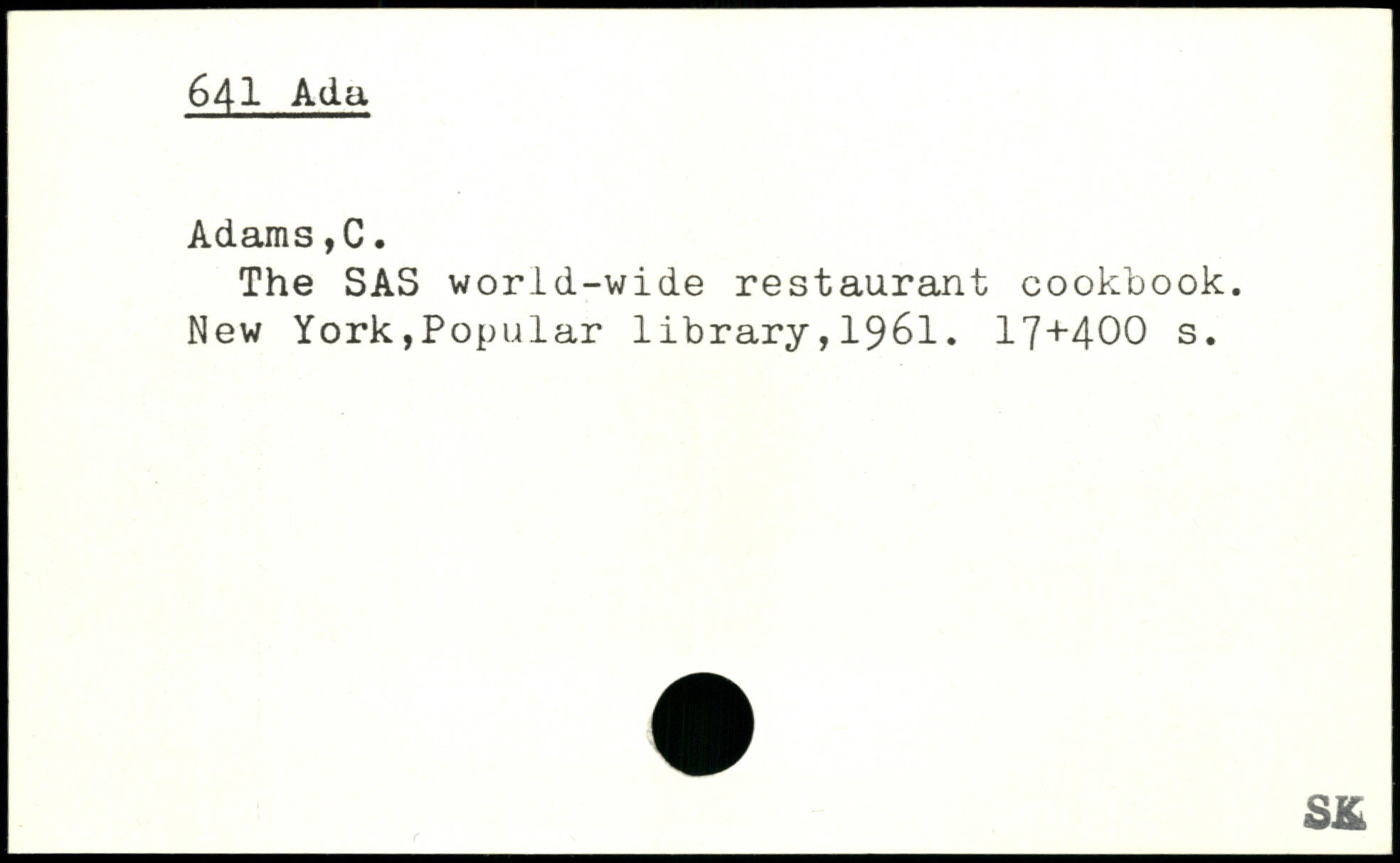 The SAS world-wide restaurant cookbook.