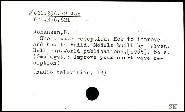 Short wave reception. How to improve -and how to build. Models built by I.Yvan.