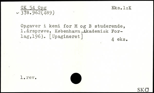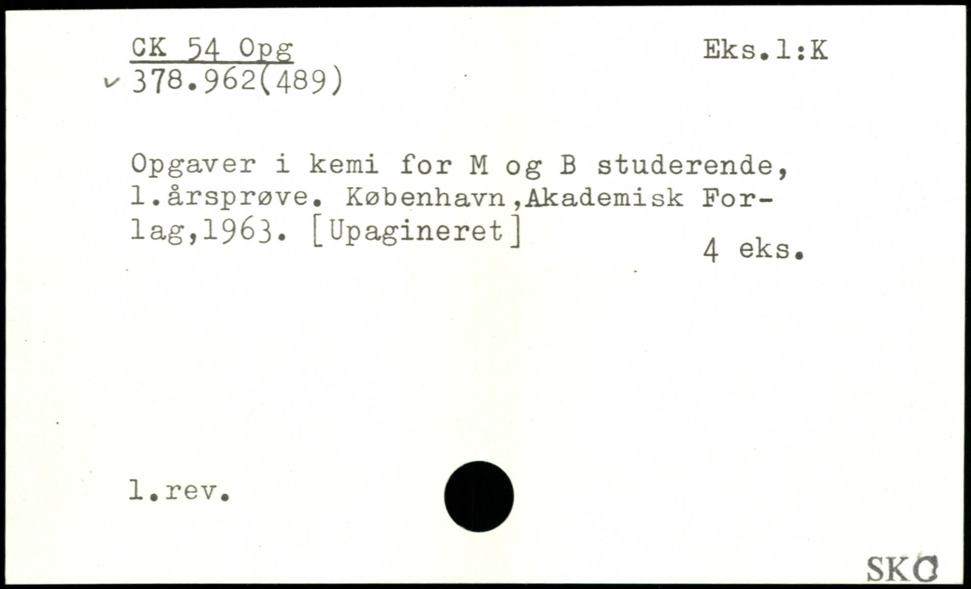 Opgaver i kemi for M og B studerende, 1.årsprøve.