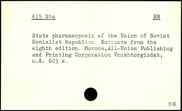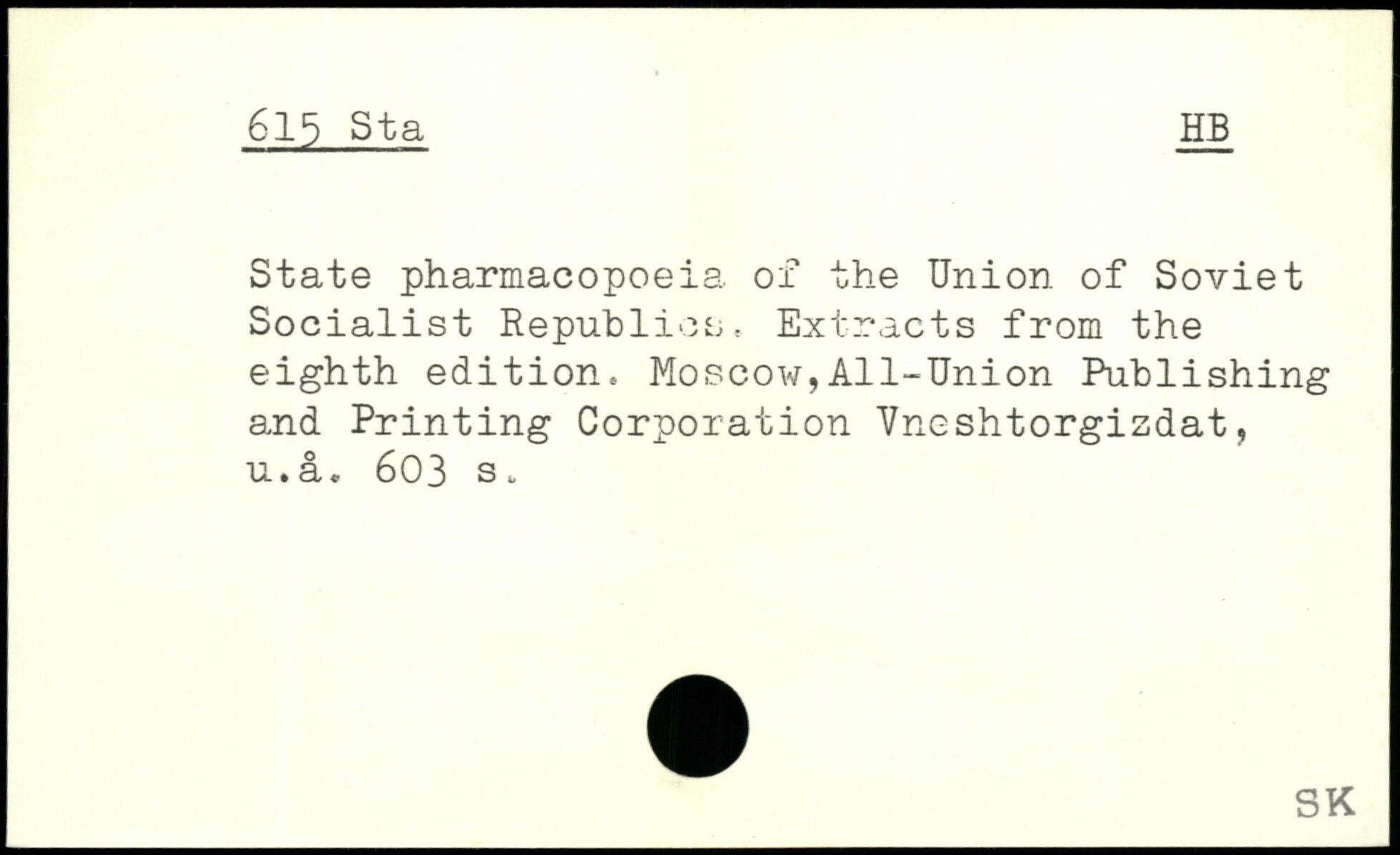 State pharmacopoeia of the Union of Soviet Socialist Republics, Extracts from the eighth edition, Moscow,All-Union Publishing and Printing Corporation Vneshtorgisdat, u.a.
