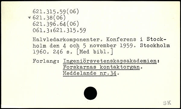 Halvledarkomponentero Konferens i Stockholm den 4 och. 5 november 1959