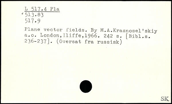 Plane vector fields. By M.A.Krasnosel1skiy a.o.
