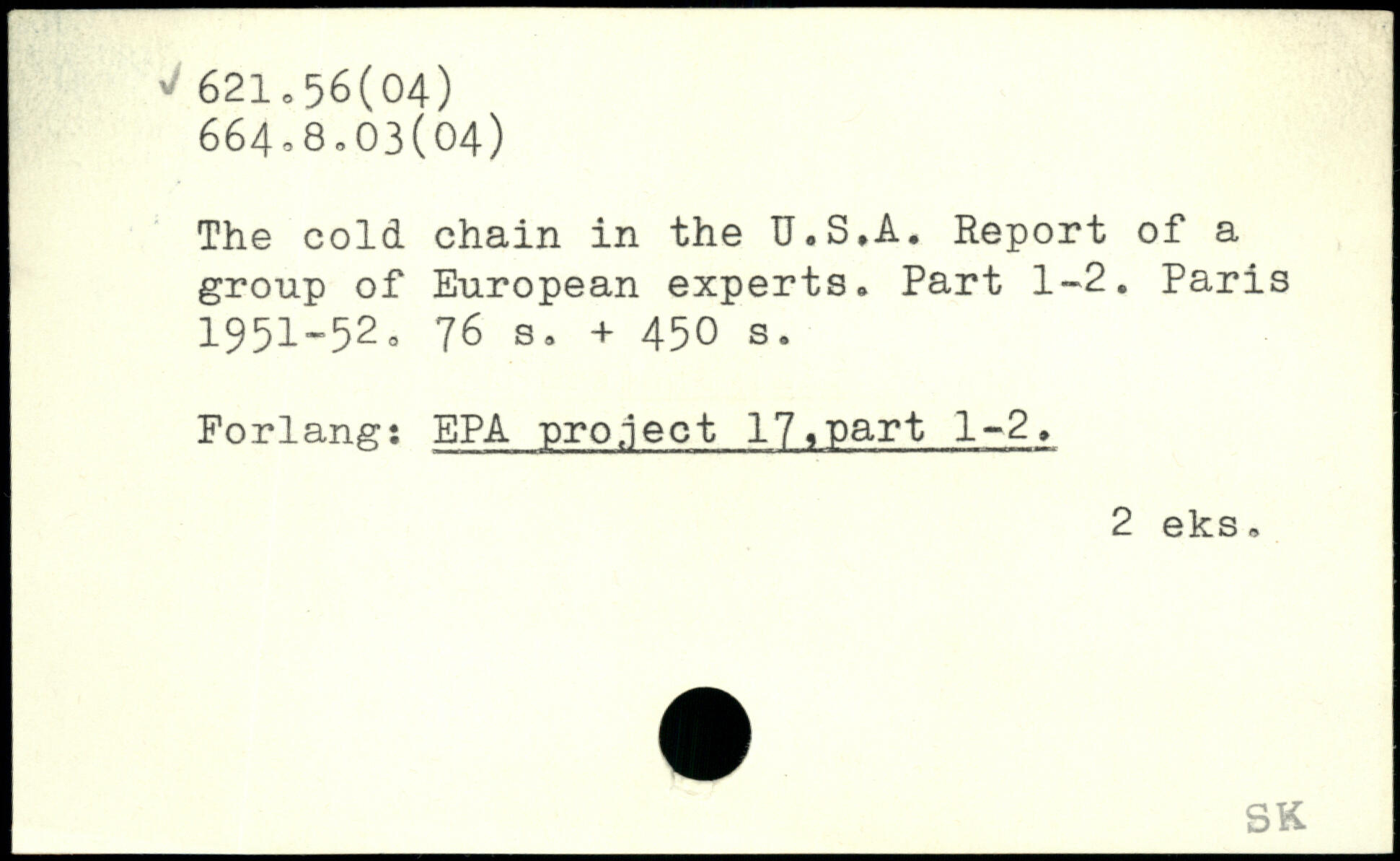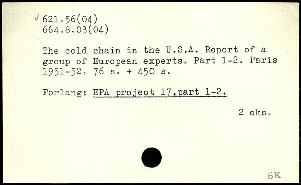 The cold chain in the U.S.A. Report of a group of European experts. Part 1-2.