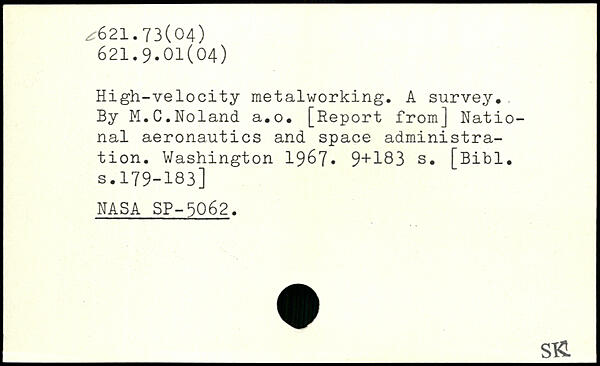 High-velocity metalworking. A survey. By M.C.Noland a.o. [Report from] National aeronautics and space administration.