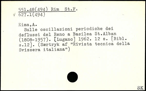 Sulle oscillazioni periodiche dei deflussi del Reno a Basilea St.Alban (1808-1957). [Lugano] 1962.