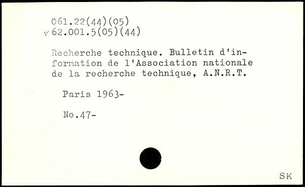 Recherche technique. Bulletin dfinformation de l'Association nationale de la recherche technique, A.N.R.T.