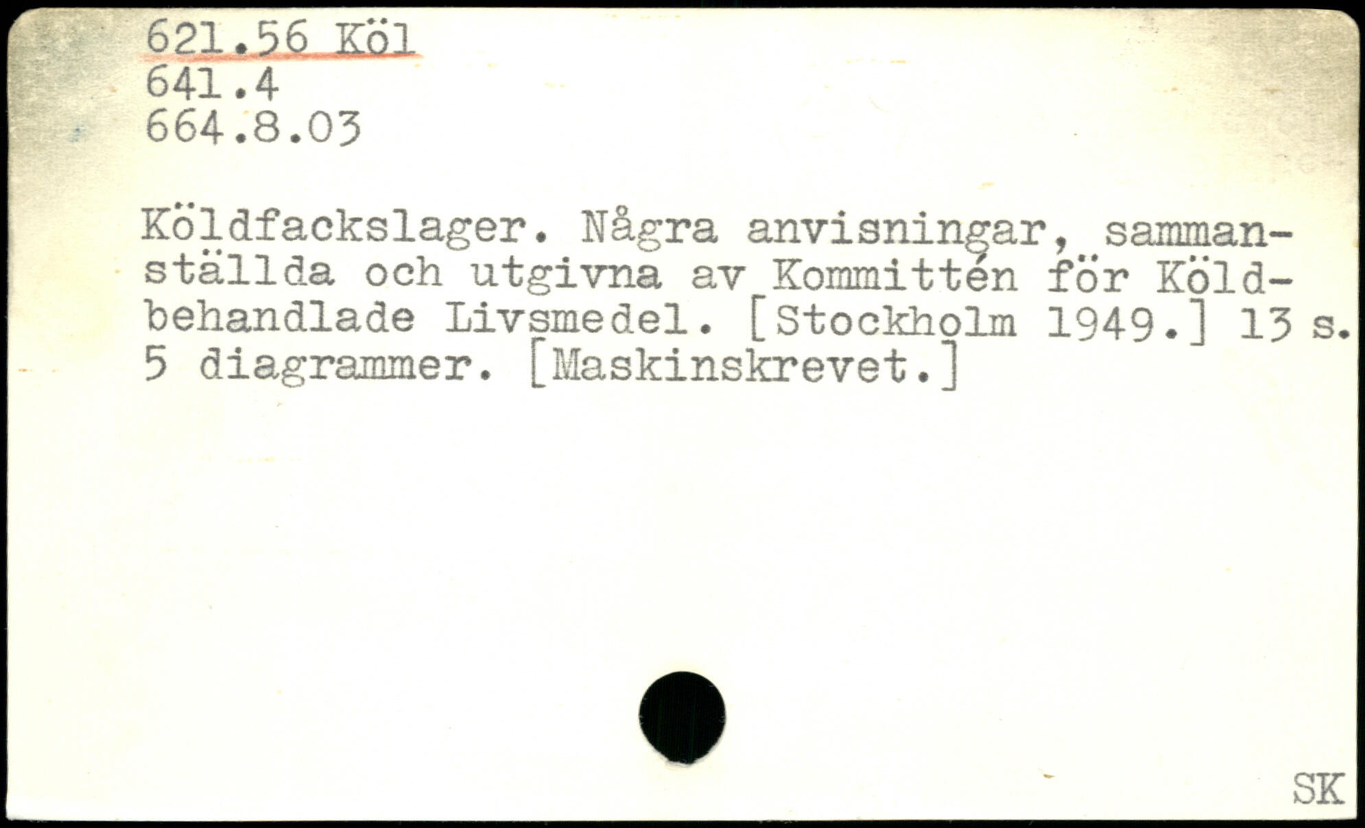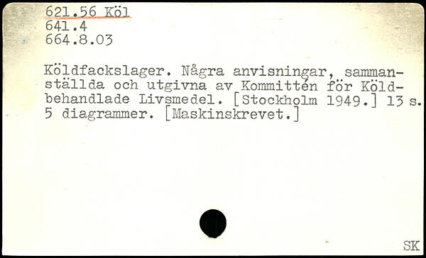 Ko. 1 dfackslager. Några anvisningar, sammanställda och utgivna av Kommittén för Köld-behandlade Livsmedel.