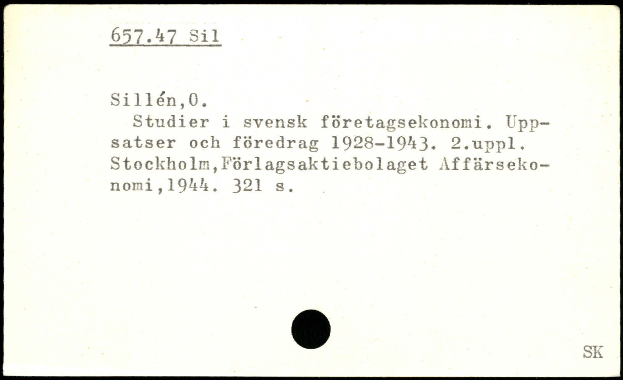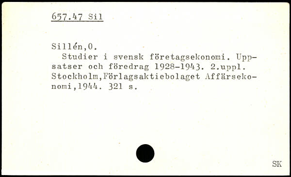 Studier i svensk företagsekonomi. Uppsatser och föredrag 1928-1943.