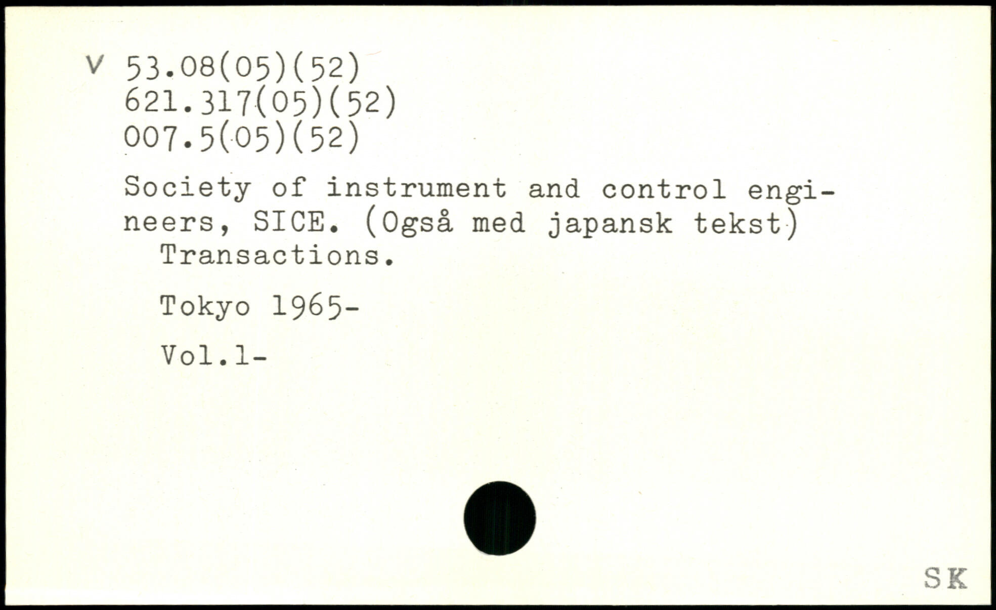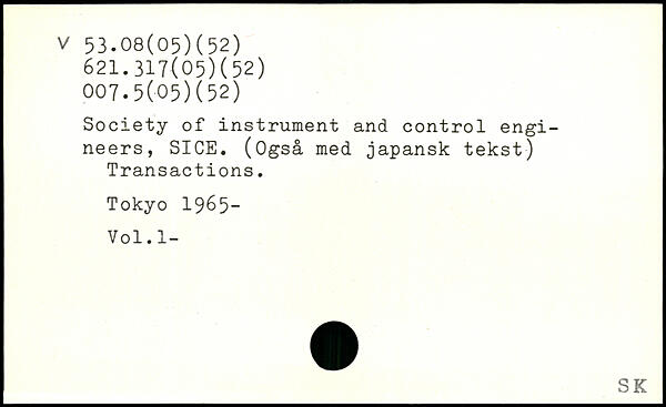 Society of instrument and control engineers, SICE. (Også med japansk tekst) Transactions.