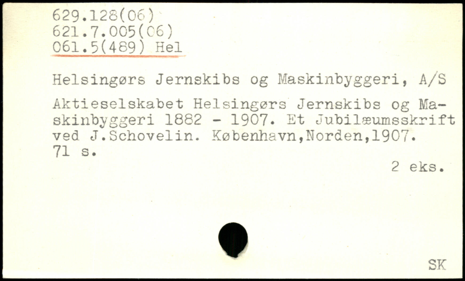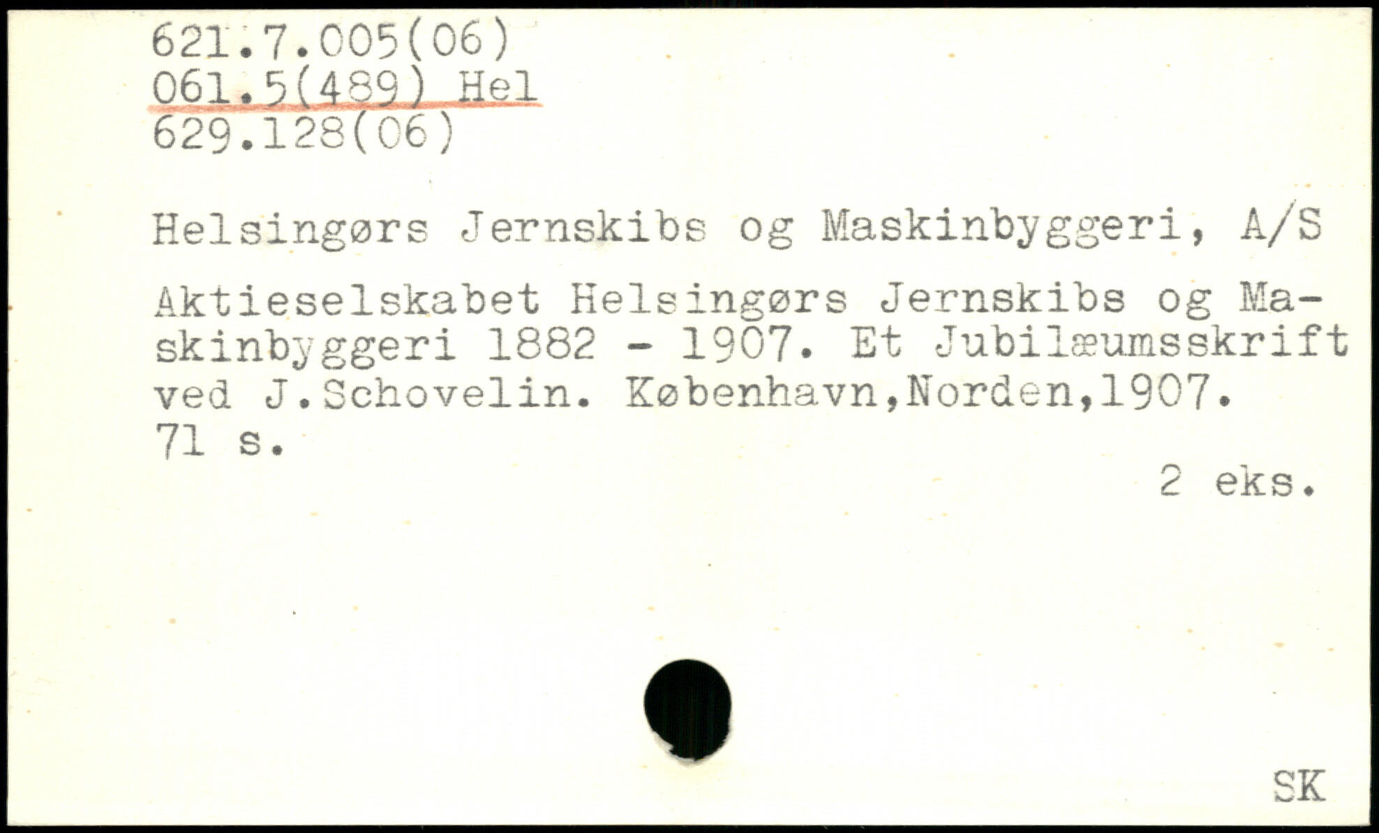 Helsingørs Jernskibs og Maskinbyggeri, A/S Aktieselskabet Helsingørs Jernskibs og Maskinbyggeri 1882 - 1907, Et Jubilæumsskrift ved J.Schovelin.
