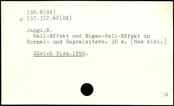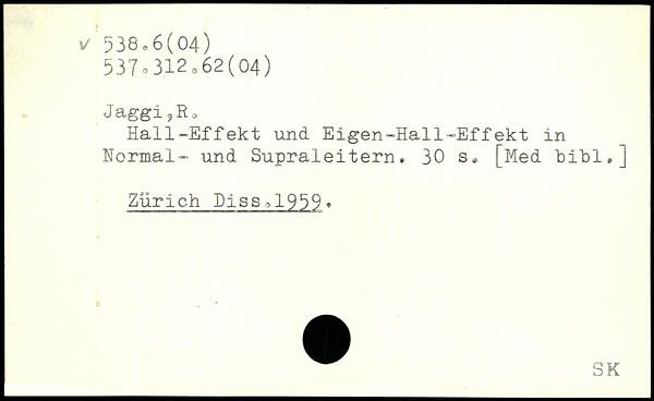 Jaggi?Ra Hall-Effekt und Eigen-Hall-Effekt in Normal- und Supraleitern.