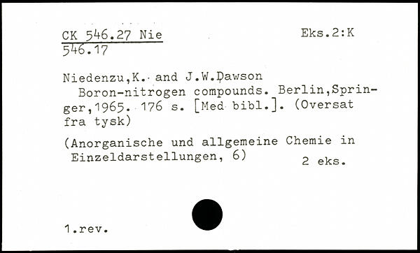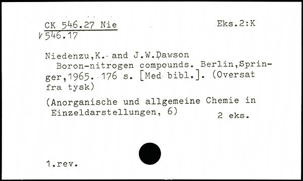Niedenzu,K.■ and J.W.pawson Boron-nitrogen compounds.