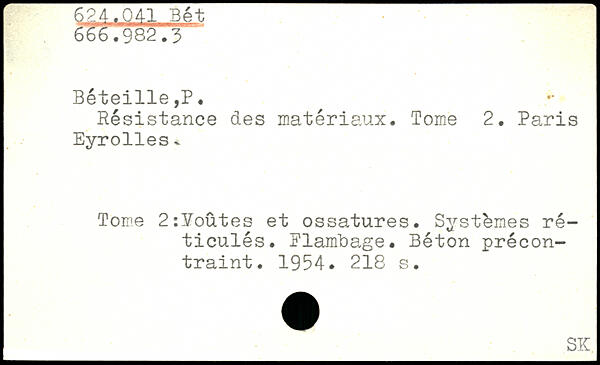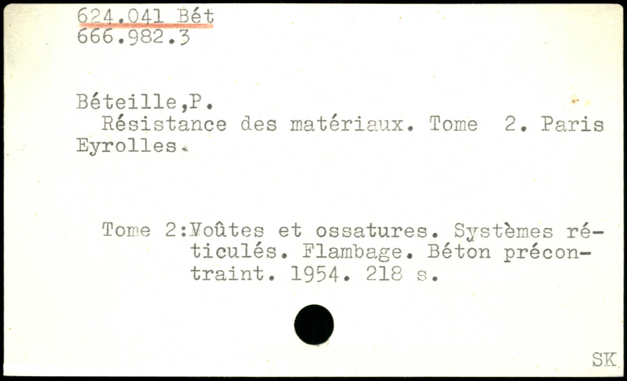 Résistance des matériaux. Tome 2. Paris Eyrolles. Tome 2:Voûtes et ossatures. Systèmes réticulés. Blamlage. Béton précontraint. 1954.