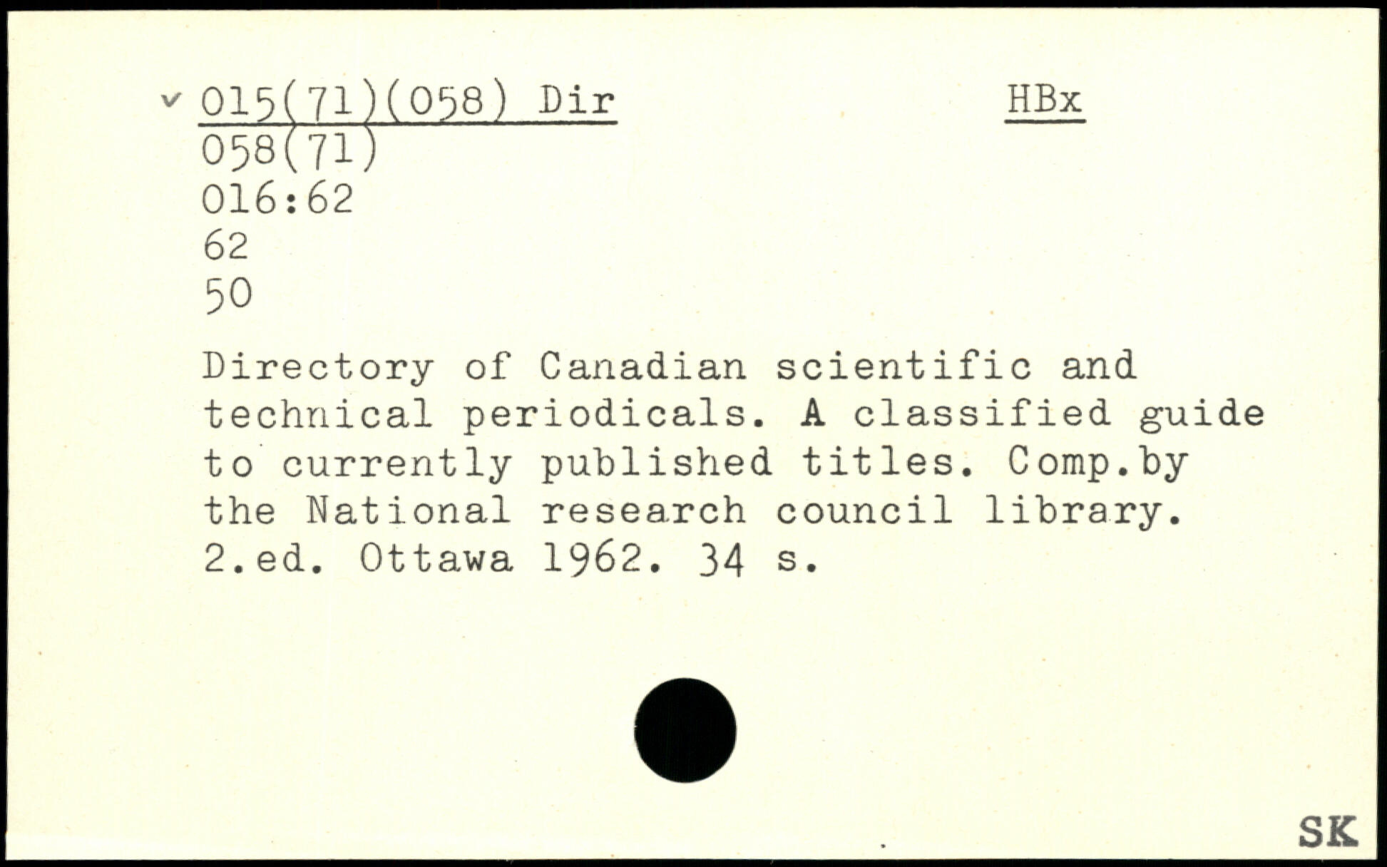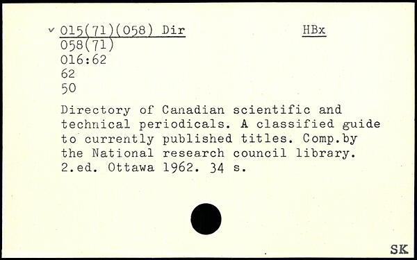 UDK: 015(71)(058) Dir, 058(71), 016:62, 62, 50