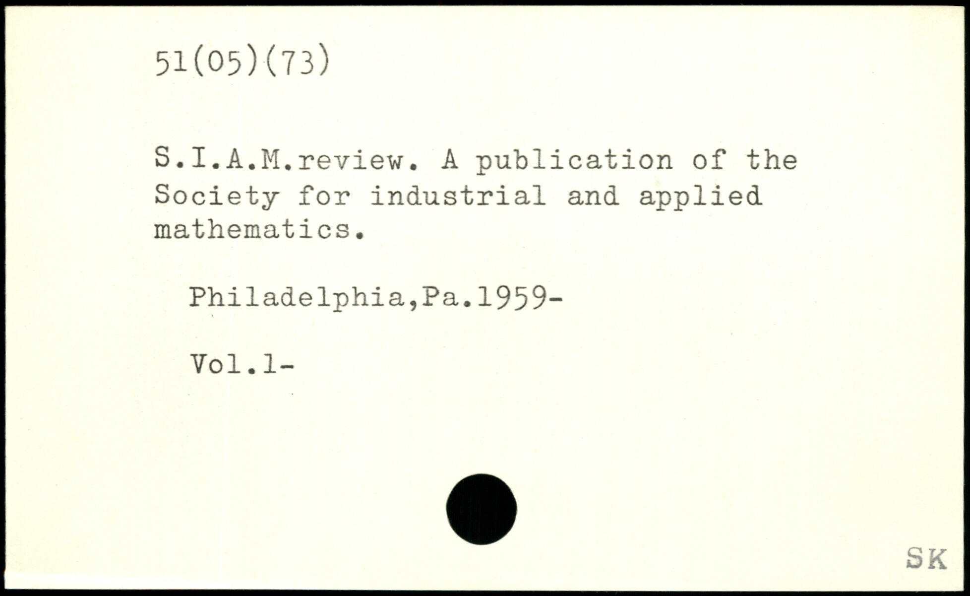 S.I.A.M.review. A publication of the Society for industrial and applied mathematics. Philadelphia,Pa.1959- Vol.l-