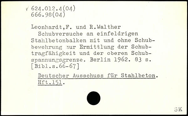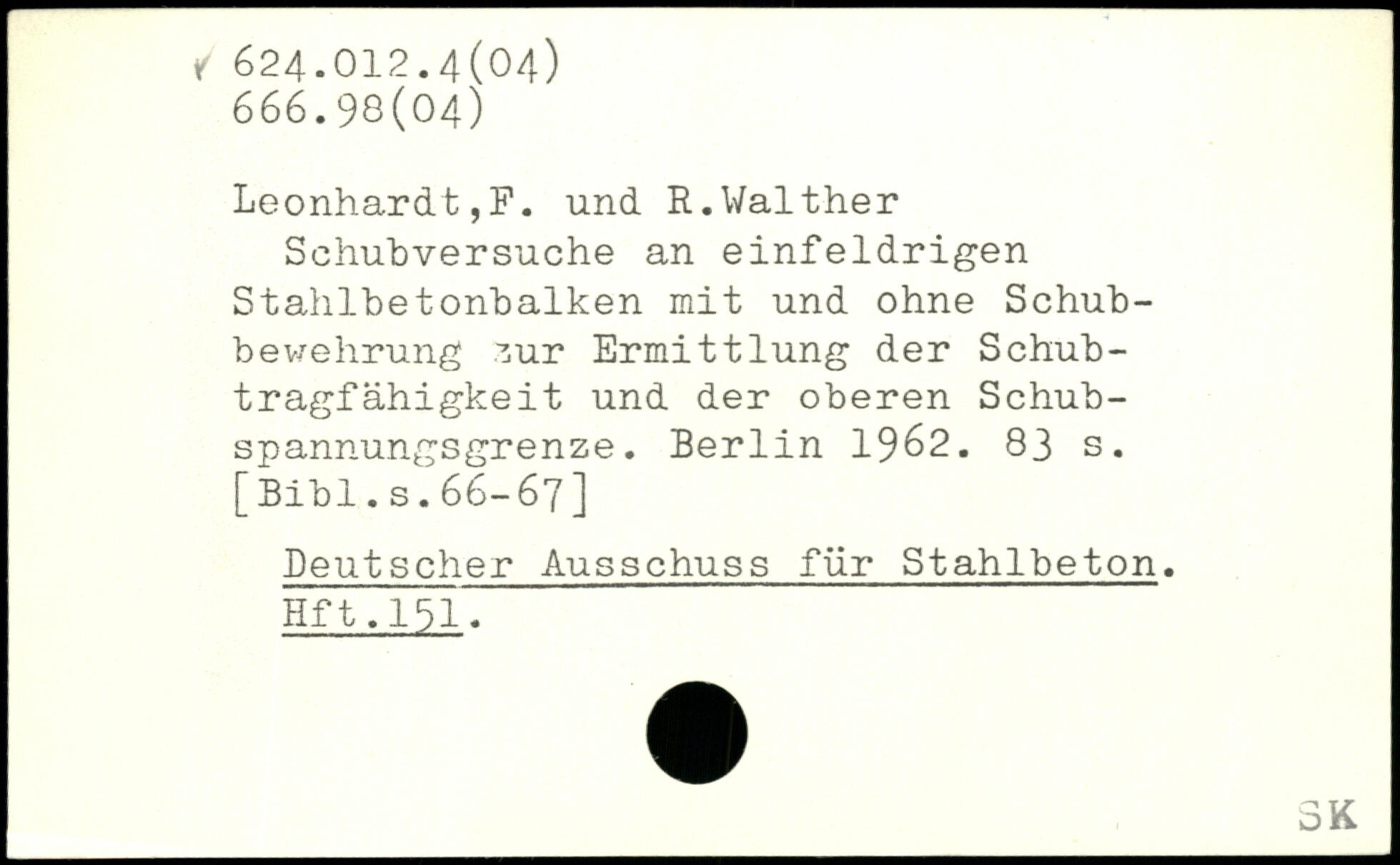 Schuhversuche an einfeldrigen Stahlbetonbalken mit und ohne Schubbewehrung cur Ermittlung der Schub-tragf ähigkeit und der oberen Schubspannungsgrenze.