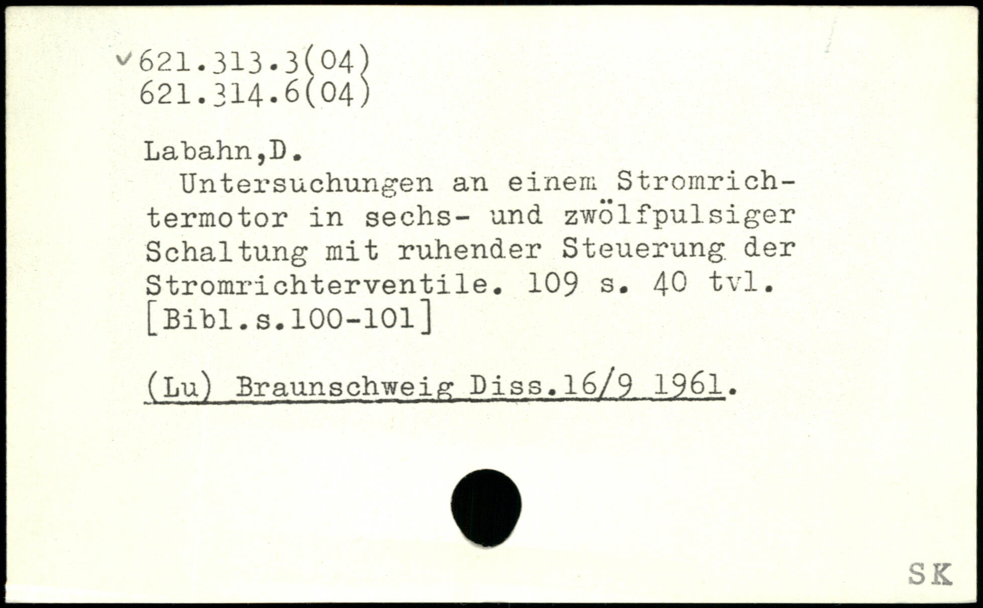 Untersuchungen an einem Stromrichtermotor in sechs- und zwölfpulsiger Schaltung mit ruhender Steuerung der Stromrichterventile.