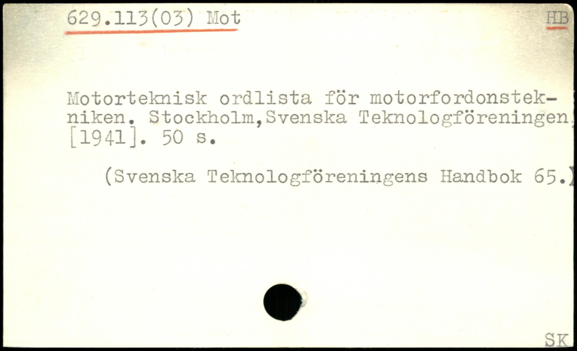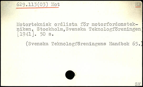 Motorteknisk ordlista för motorfordonstek-niken. Stockholm,Svenska Teknologföreningen. [1941].