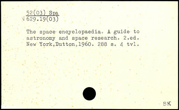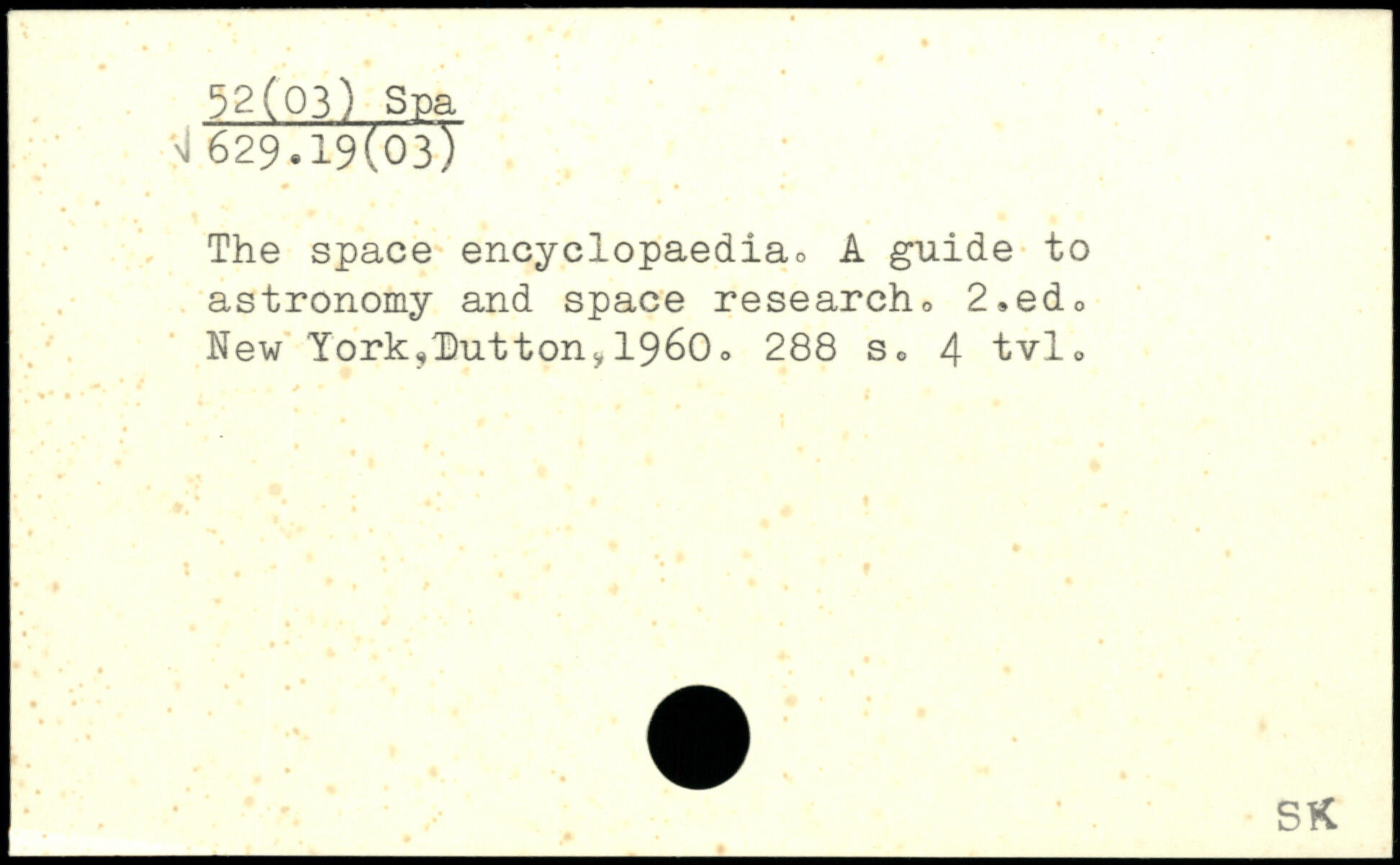 The space encyclopaedia^ A guide to astronomy and space research, 2,ed. New York,T)utton<,1960