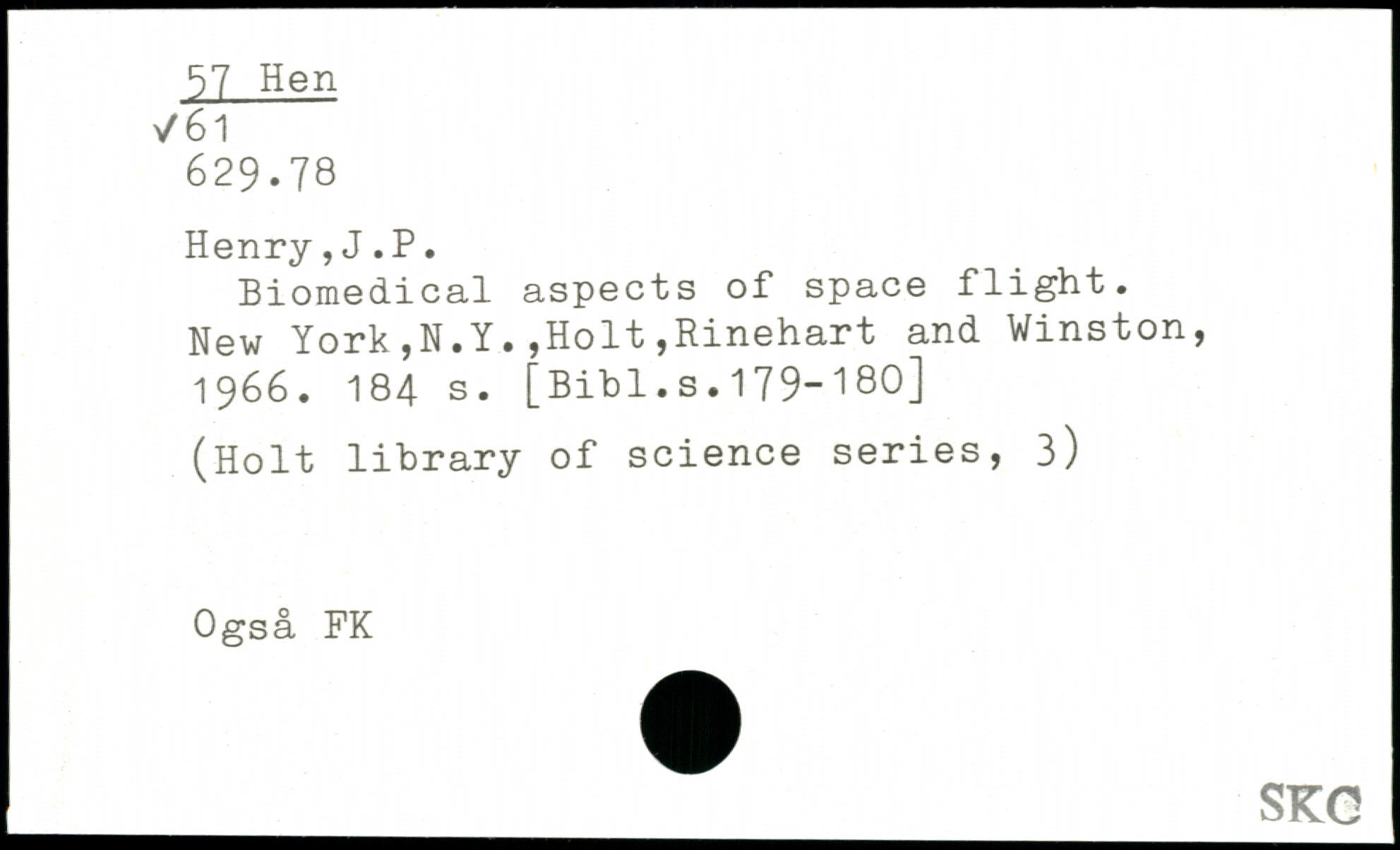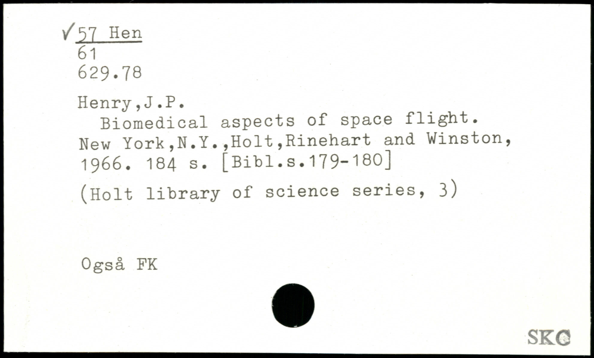 UDK: 57 Hen, 61, 629.78
