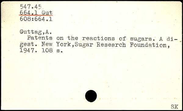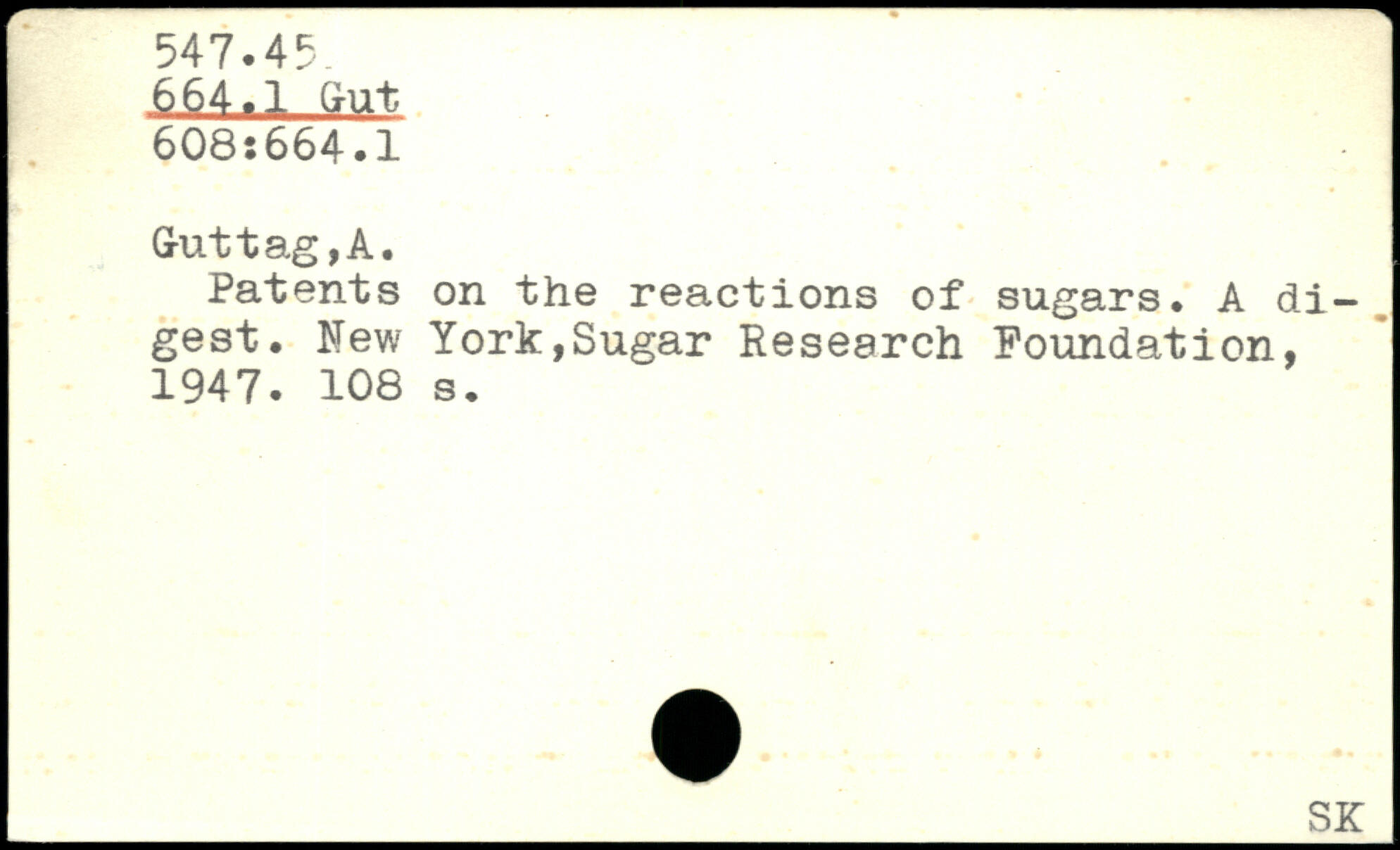Ml.! Gryit 608:664.1 G-uttag,A. Patents on the reactions of sugars, A digest