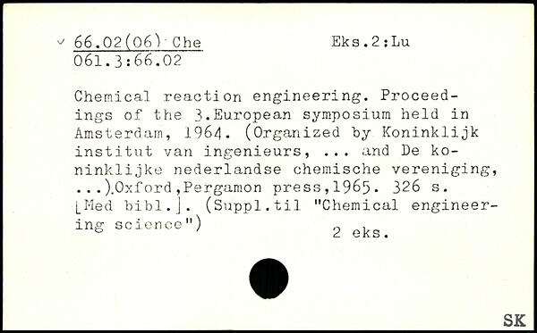 Chemical reaction engineering. Proceedings of the 3.European symposium held in Amsterdam, 1964. (Organized by Koninklijk institut van ingenieurs, ... and De ko-ninklijke nederlandse chemische vereniging, ... ).0>:ford , Pergamon press, 1965.