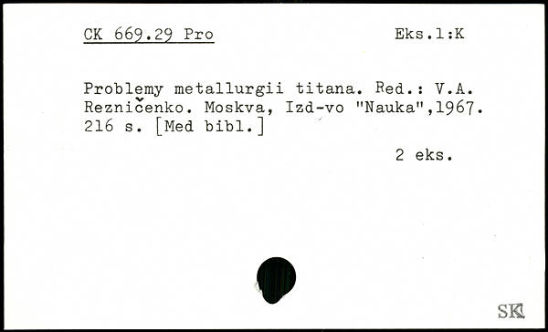 Problemy metallurgii titana. Red. : Y.A. Reznicenko. Moskva, Izd-vo "Nauka",1967.