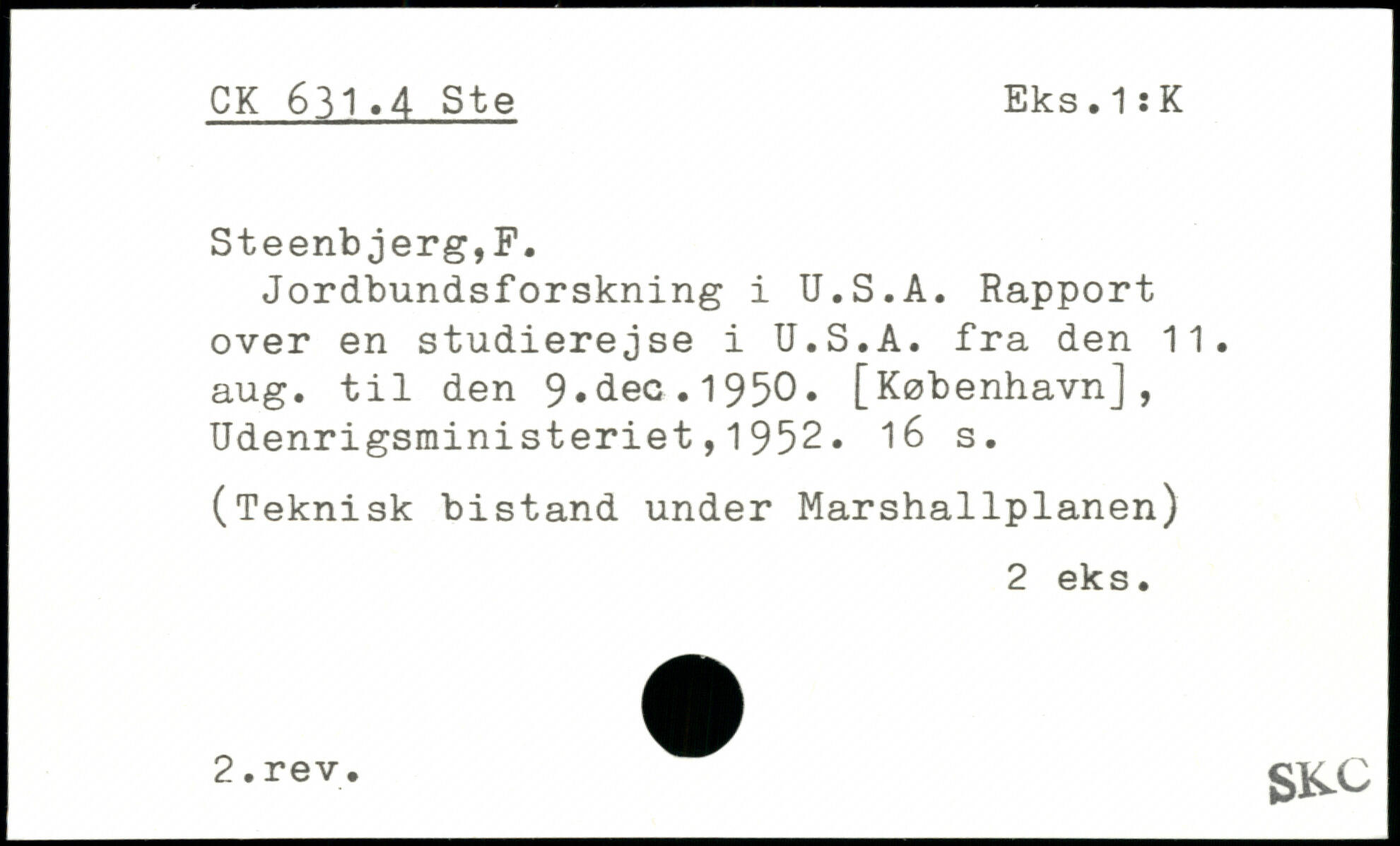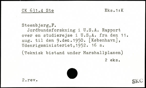 Jordbundsforskning i U.S.A. Rapport over en studierejse i U.S.A. fra den 11. aug. til den 9,cLec.1950. [København], Udenrigsministeriet,1952.