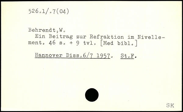 Behrendt SW0 Ein Beitrag zur Refraktion im Nivellement