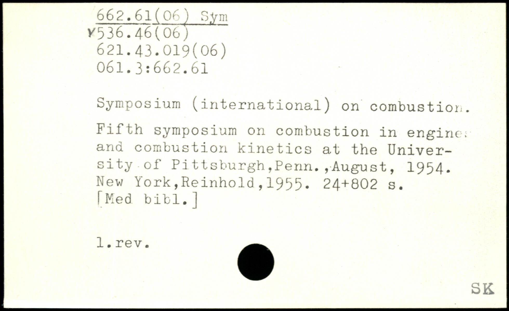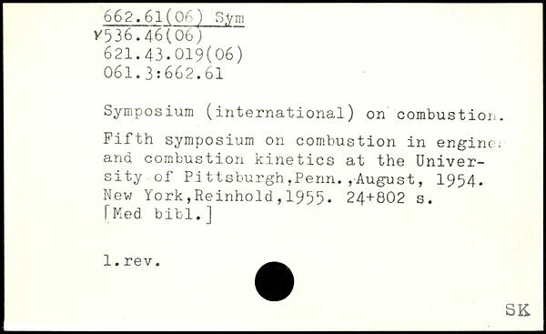 Symposium (international) on combustior. Fifth symposium on combustion in engine; and combustion kinetics at the