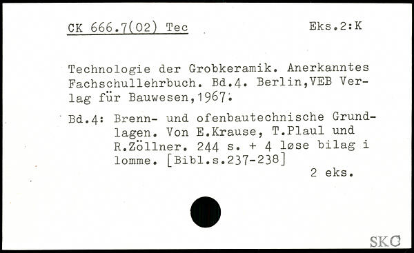 Technologie der Grobkeramik. Anerkanntes Fachschullehrbuch.
