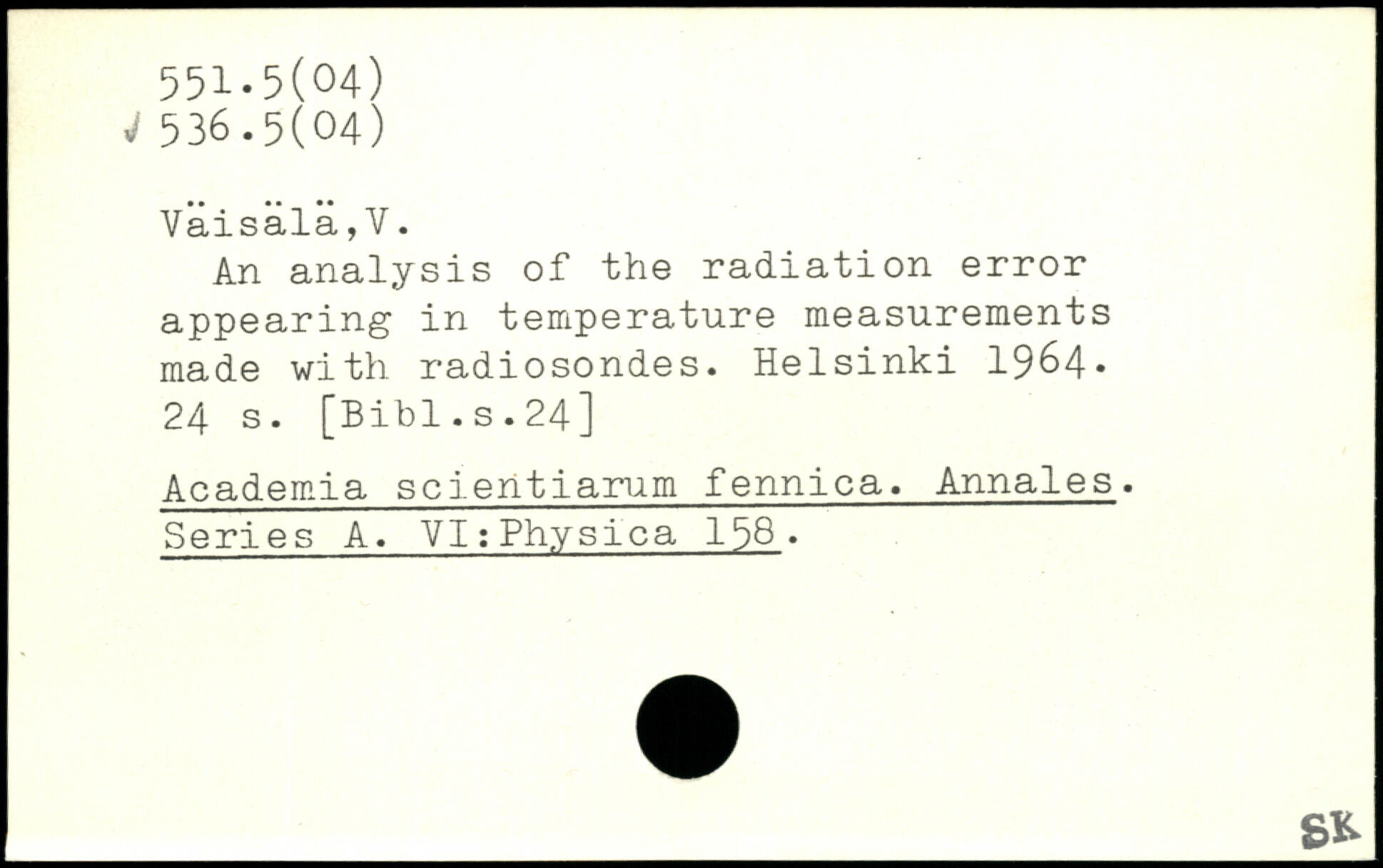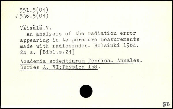 An analysis of the radiation error appearing in temperature measurements made with radiosondes.
