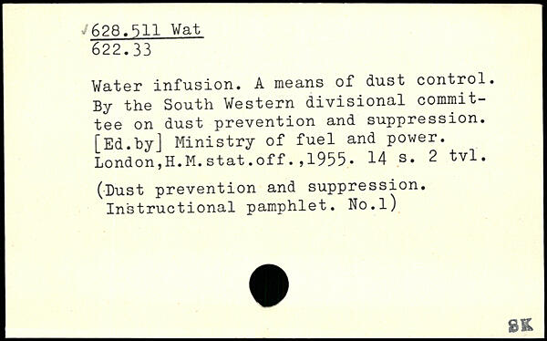 Water infusion. A means of dust control. By the South Western divisional committee on dust prevention and suppression.