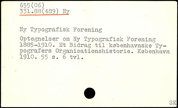 Ny Typografisk forening Optegnelser om Ny Typografisk forening 1885-1910. Et Bidrag til københavnske Typografers Organisationshistorie.