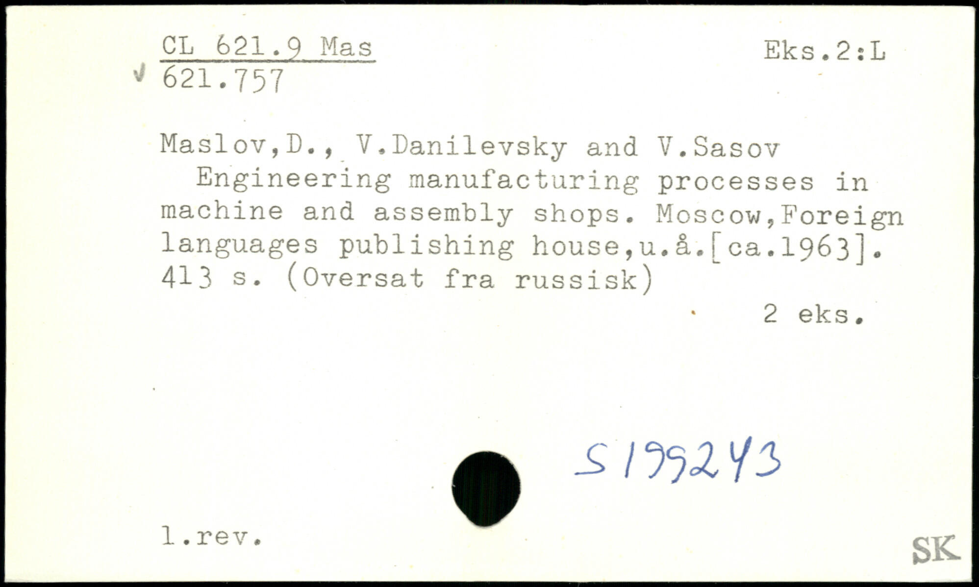 Engineering manufacturing processes in machine and assembly shops. Moscow,Foreign languages publishing house,u.å.[ca.1963].