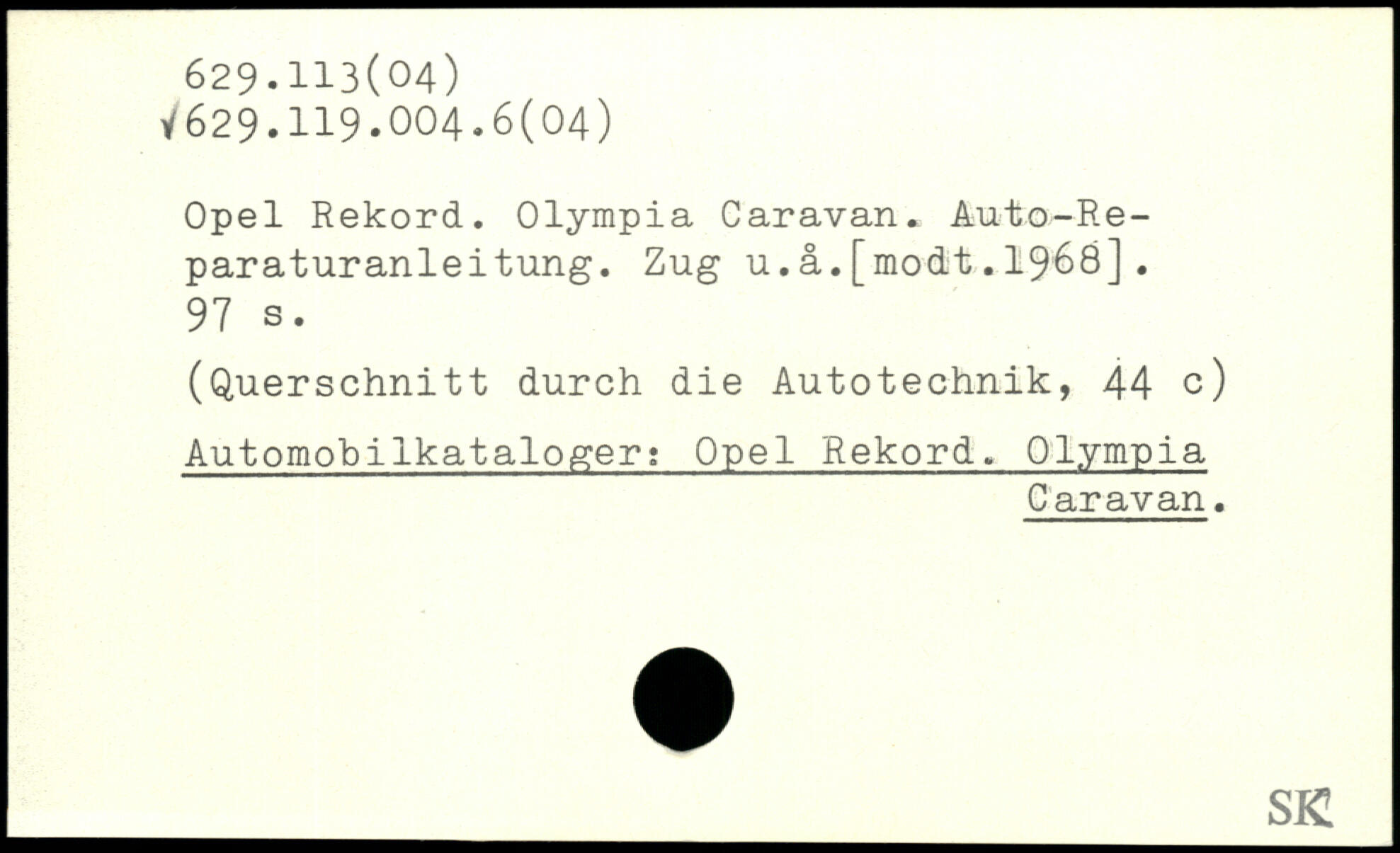 Opel Rekord. Olympia Caravan. Auto-Reparaturanleitung. Zug u.å.[modt.19-66].