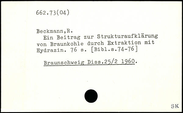 Ein Beitrag zur Strukturaufklärung von Braunkohle durch Extraktion mit Hydrazin. s.