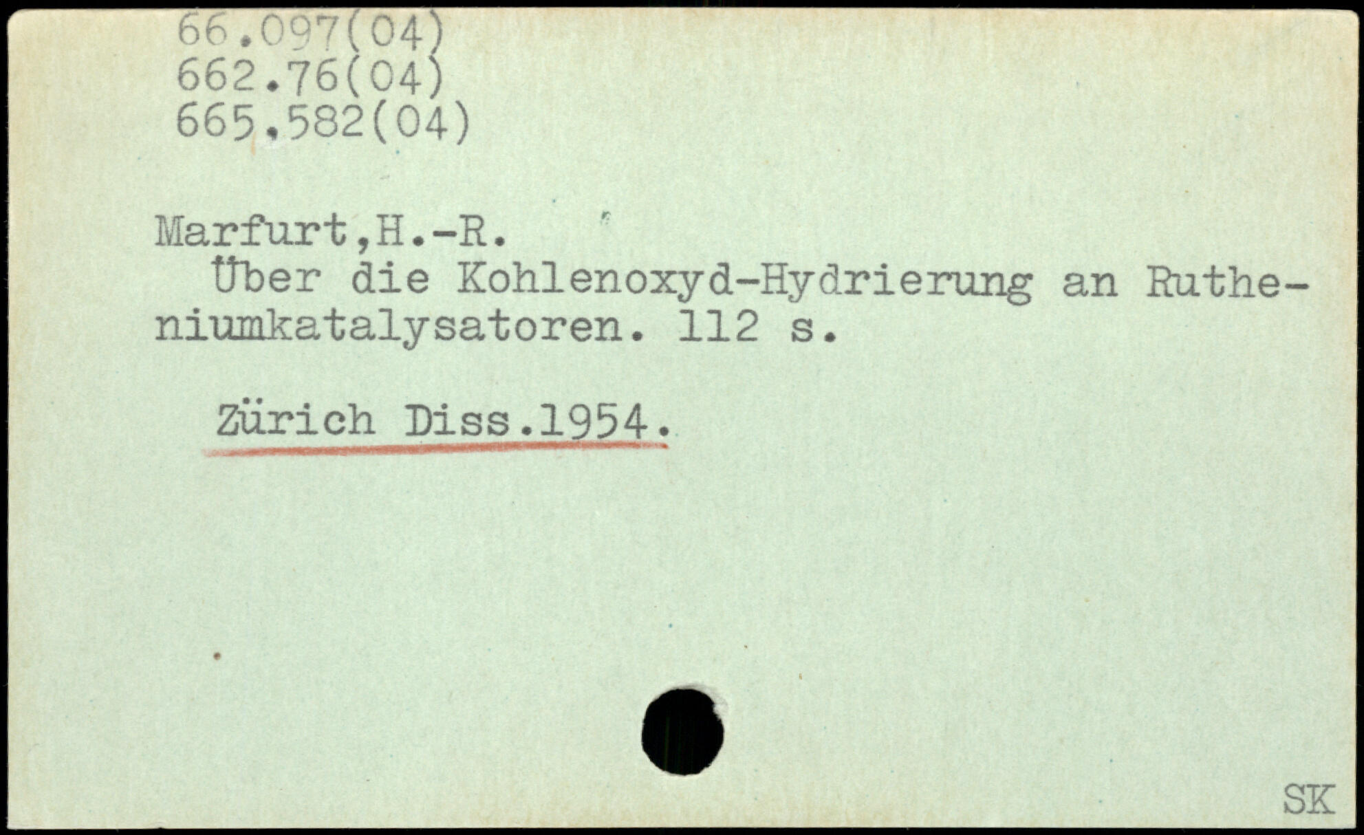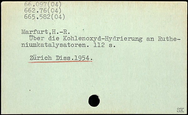 tîber die Kohlenoxyd-Hydrierung an Ruthe-niumkatalysatoren.