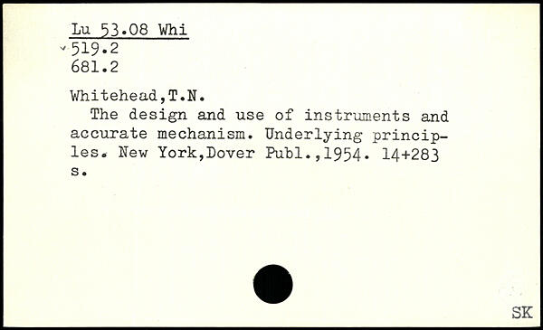 The design and use of instruments and accurate mechanism. Underlying principles.