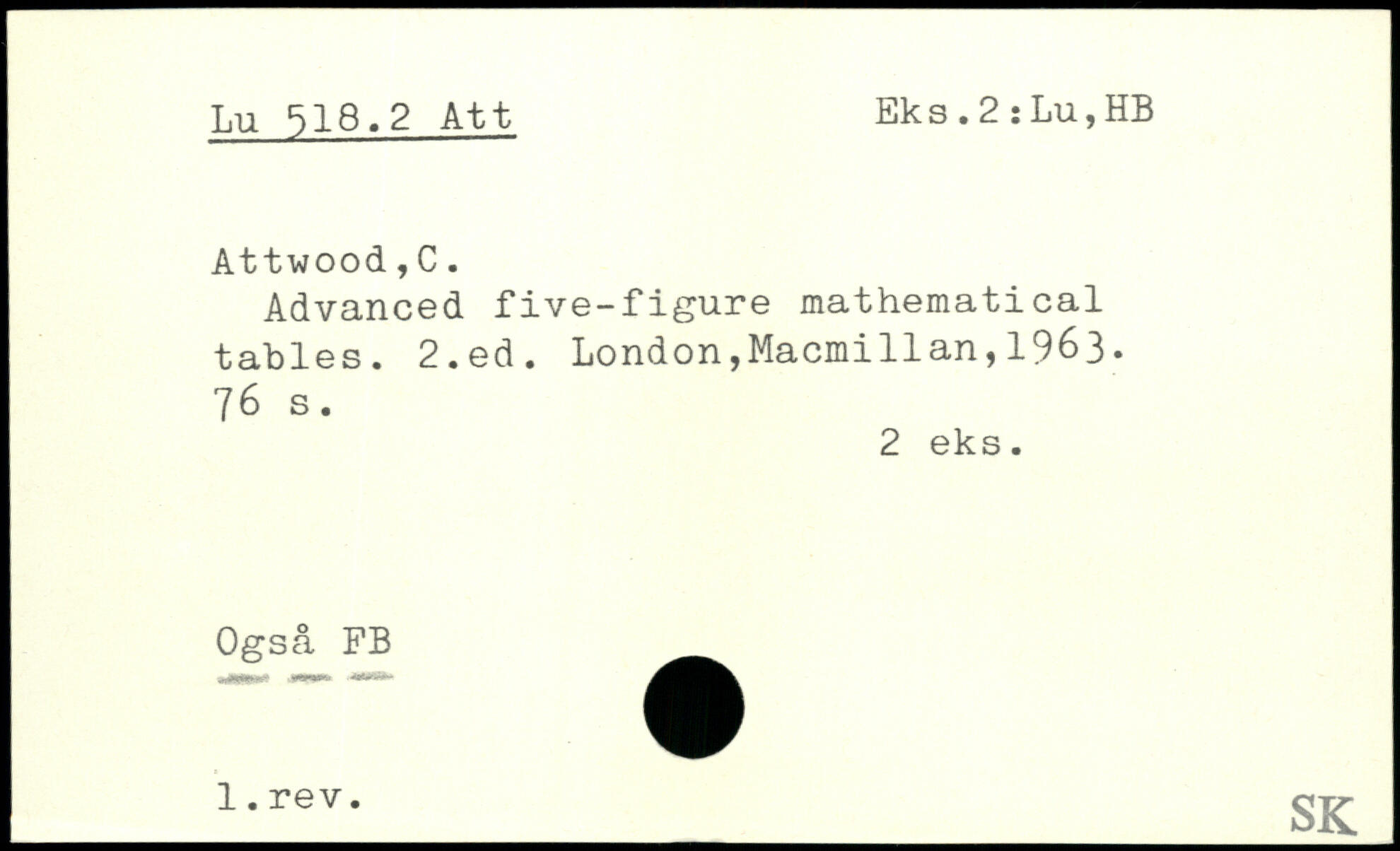 Advanced five-figure mathematical tables.