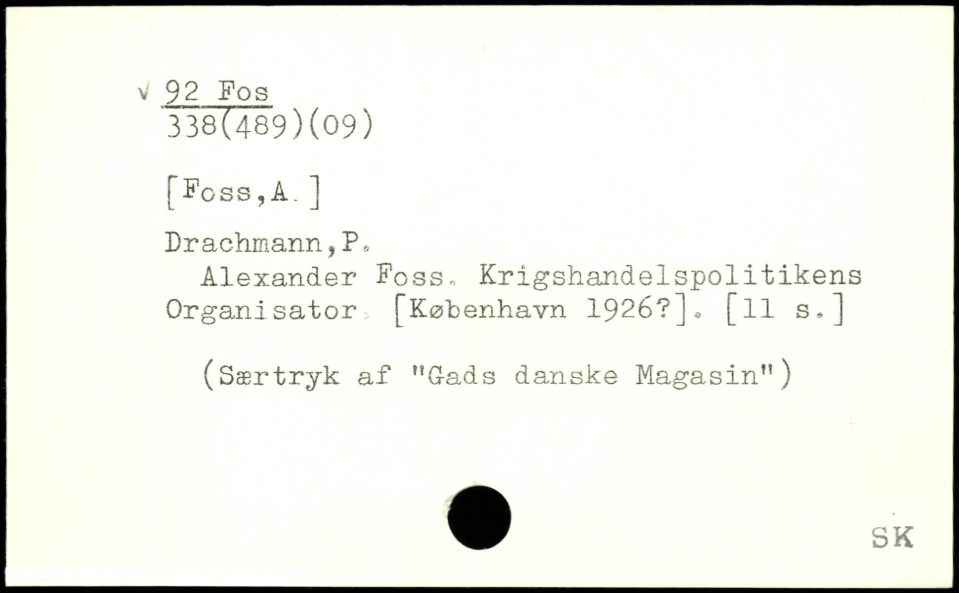 Alexander Foss. Krigshandelspolitikens Organisator