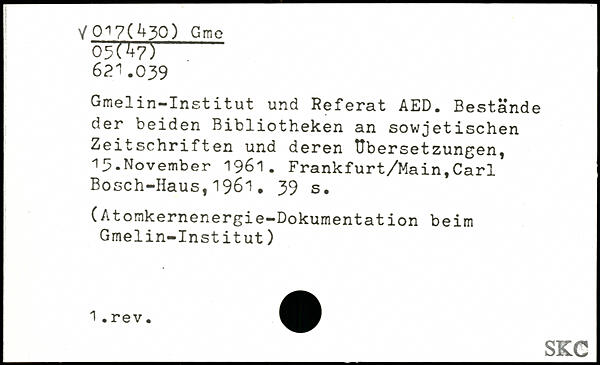 Gmelin-Institut und Referat AED. Bestände der beiden Bibliotheken an sowjetischen Zeitschriften und deren tlbersetzungen, 13.November 1961.