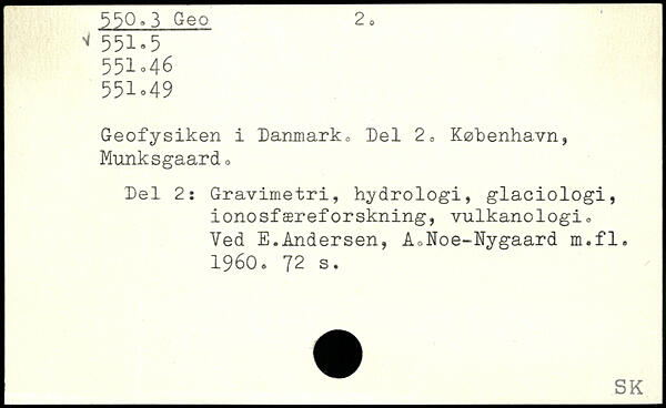 Geofysiken i Danmarkc Del 20 København, Munksgaard 0 Del 2: Gravimetri, hydrologi, glaciologi, ionosfæreforskning, vulkanologi, Ved E.Andersen, AoNoe-Nygaard m.fl. 1960.