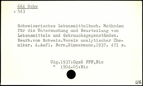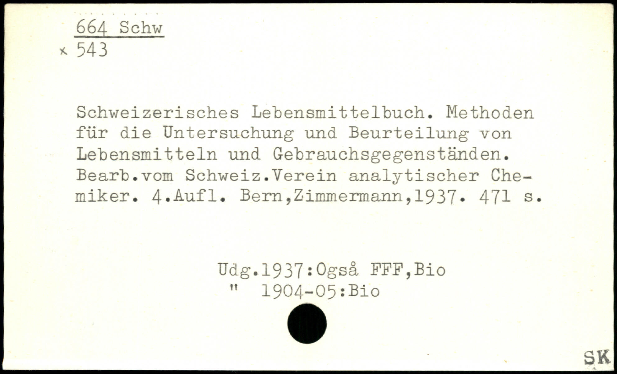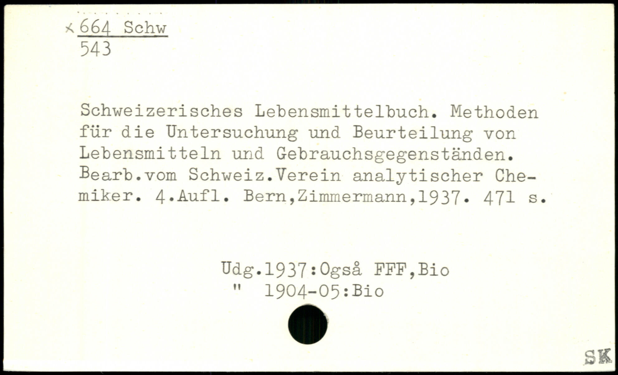 Schweizerisches Lebensmittelhuch. Methoden für die Untersuchung und Beurteilung von Lebensmitteln und Gebrauchsgegenständen. Bearb.vom Schweiz.Verein analytischer Chemiker. 4.-A.ufl.