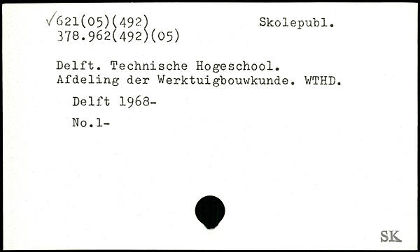Delft. Technische Hogeschool. Afdeling der Werktuigbouwkunde. WTHD. Delft 1968- No.l-
