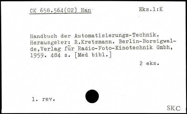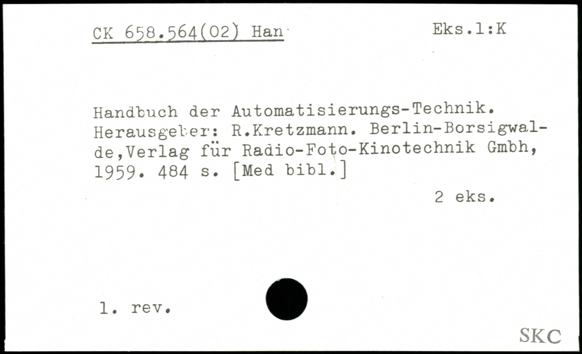 Handtuch der Automatisierungs-Technik. Herausgeber: R.Kretzmann.