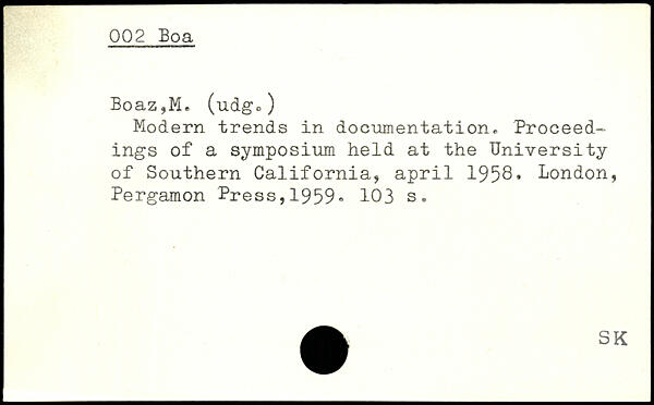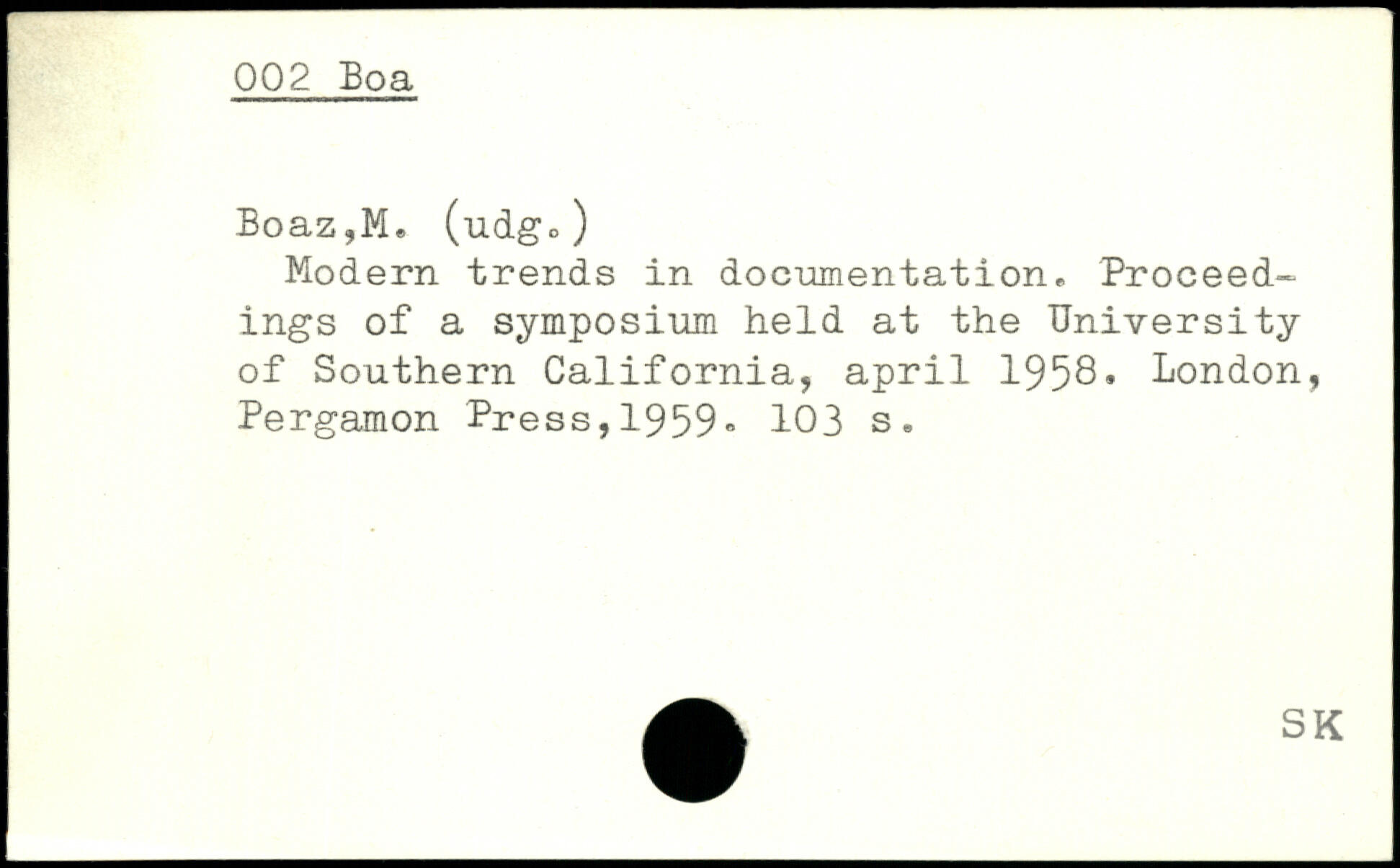 Modern trends in documentation. Proceedings of a symposium held at the University of Southern California, april 1958