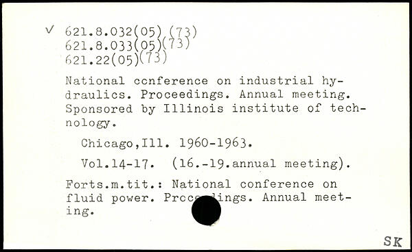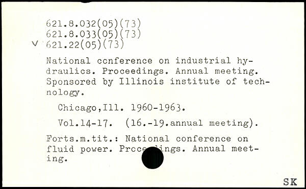 National conference on industrial hydraulics. Proceedings. Annual meeting. Sponsored by 1111nois institute of technology. Chicago,111. 1960-1963.