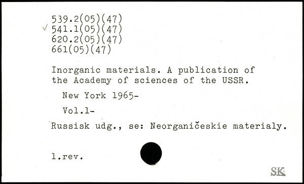 Inorganic materials. A publication of the Academy of sciences of the USSR.